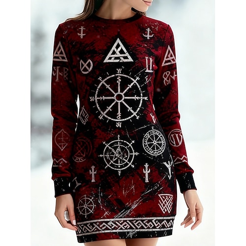Per donna Mini Abito Abito Felpa Vestito Casual Abito Invernale Tubino Vintage Quotidiano All'aperto Vacanza Vestibilità regolare Grafico Manica Lunga Girocollo Rosso Primavera Autunno Inverno
