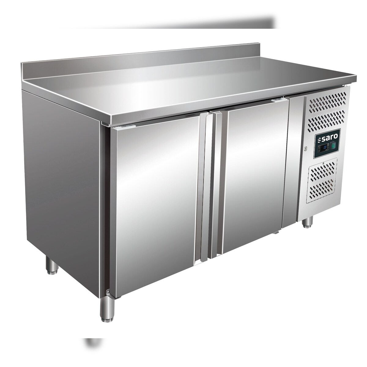 Saro Kühltisch mit 2 Türen und Aufkantung Modell SNACK, B 1360 x T 600 x H 990 - 1050 mm