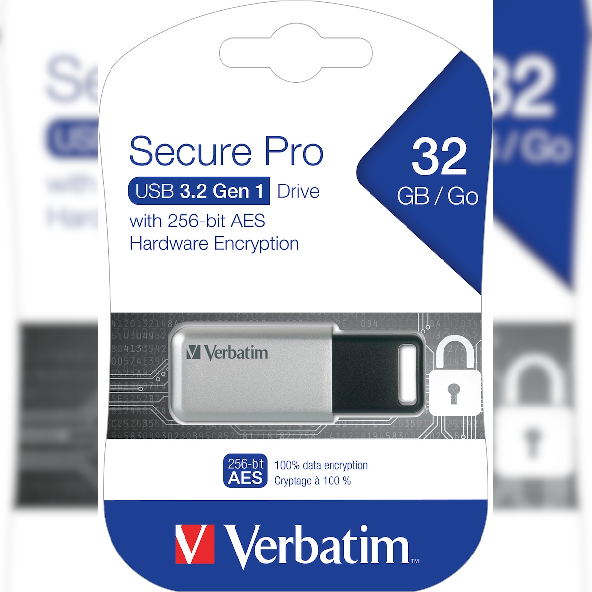 Verbatim USB 3.0 Stick 32GB, Secure Pro, Silber (R) 100MB/s, (W) 35MB/s, AES 256-Bit, Retail-Blister
