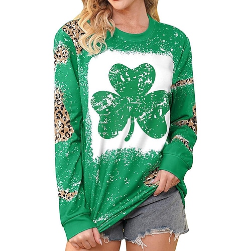 Per donna maglietta Trifoglio Festa di San Patrizio Informale Verde primavera Verde chiaro Verde militare Stampa Manica lunga Di tendenza Rotonda Standard Primavera Autunno