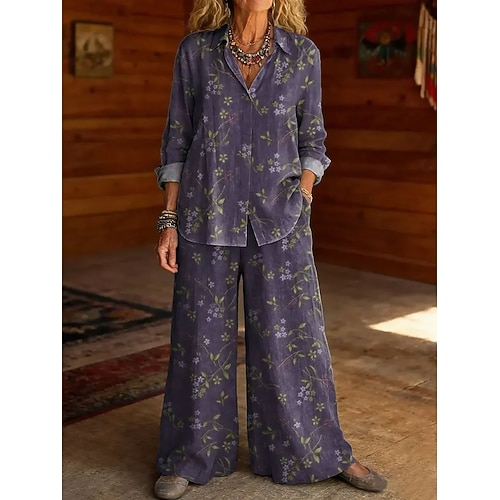 Per donna Set da due pezzi Set di Pantaloni Bolero Top Manica Lunga Colletto a Camicia Grafico A Pois Stampato Quotidiano Elegante Casuale Quotidiano Spiaggia Viola Verde Beige Estate Vestibilit