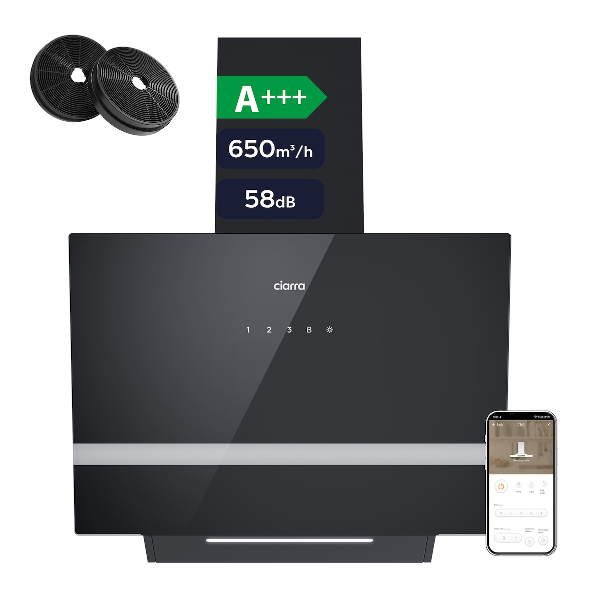 CIARRA Kopffreihaube A+++ 650 m³/h Dunstabzugshaube 60cm WIFI + APP & Touch Control BOOST VM6736HB