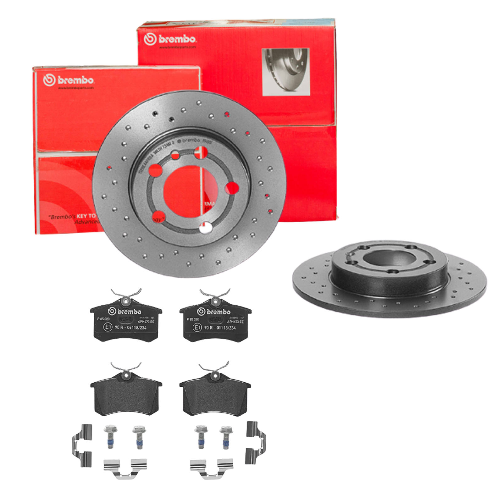 BREMBO Bremsensatz-Hinterachse XTRA LINE / STANDARD SK8K0F82C1 Bremsensatz, Scheibenbremse hinten rechts links Gelocht 239mm für SKODA VW SEAT PEUGEOT