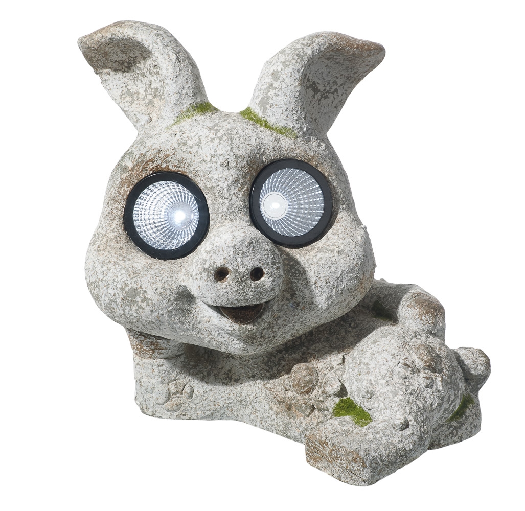 Gartenfigur groß Schwein 2 LEDs Solar Steinoptik Keramik H 26 cm