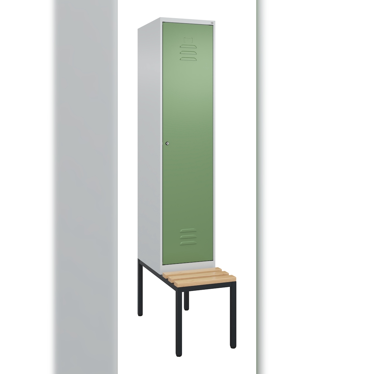 C+P Spind Classic PLUS, Buche untergebaute Sitzbank 1 Abteil, HxBxT 212x40x82cm, Zylinderschloss, Hellgrau/Resedagrün von PROREGAL