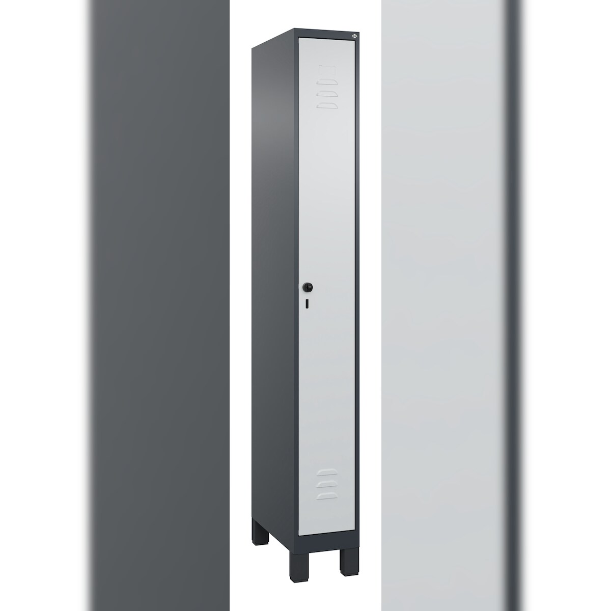 C+P Spind Classic PLUS, Füßen, 1 Abteil, HxBxT 195x25x50cm, Sicherheitsdrehriegel, Anthrazit/Hellgrau von PROREGAL