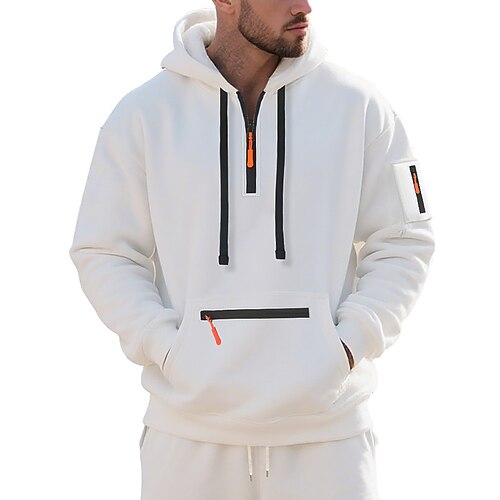 Per uomo Felpa con cappuccio Felpa con cappuccio e zip corta Felpa con cappuccio in pile Nero Bianco Blu marino Cachi Grigio chiaro Con Cappuccio Semplice Patchwork Zip a un quarto Sport Outdoor
