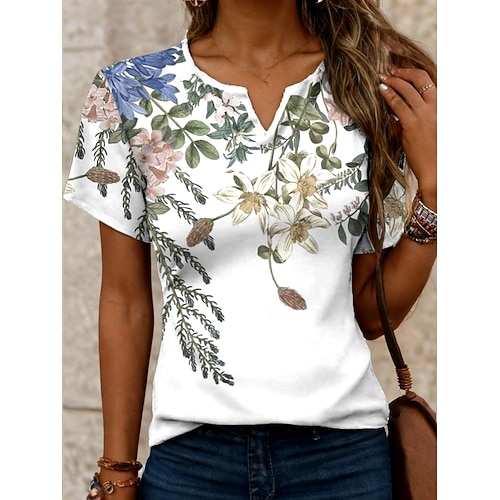 Per donna maglietta Ambra Floreale Informale Manica corta Collo dentellato Top regolari Giornaliero Stampa Verde chiaro Rosa Blu Estate Primavera