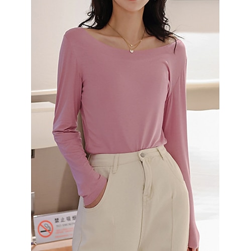 Per donna Maglietta Semplice Moda Elegante Essenziale Manica Lunga Girocollo Top Regolari Quotidiano Weekend Nero Bianco Rosa Cachi Beige Estate Primavera Autunno