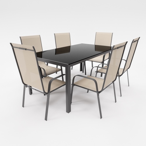 Lex Gartenmöbel Set Metall Tisch 6 Stapelsessel Essgruppe Gartenset Sitzgruppe Stuhl beige : Beige