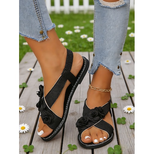 sandali da donna con fiori rosa, design a cinturini incrociati e decorazioni floreali, scarpe casual romantiche per San Valentino, appuntamenti serali, uscite primaverili e abbigliamento quotidiano