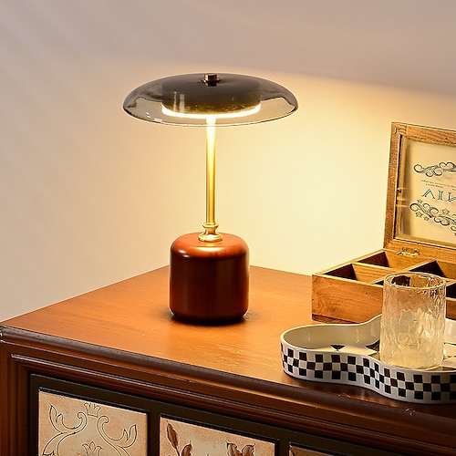 Lampada da tavolo Moderno Contemporaneo Per Interno Legno grigio fumo / Rosso