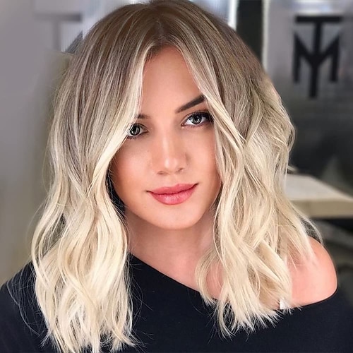parrucca lunga ondulata biondo miele con frangia a tendina per donna, parrucca sintetica resistente al calore da 26 pollici con effetto sfumato marrone-biondo, capelli ondulati dall'aspetto naturale,