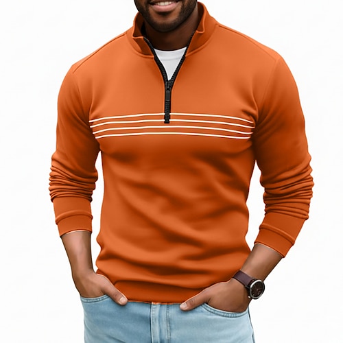 Per uomo Polo Polo con zip a un quarto Vacanza Casuale Zip a un quarto Manica Lunga Moda Confortevole A righe Con zip Primavera Autunno Tutte le stagioni Vestibilità regolare Blu marina Nero