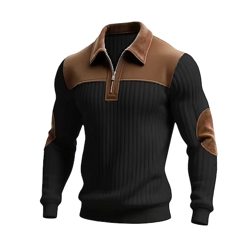 Per uomo Polo Polo con zip a un quarto Vacanza Streetwear Zip a un quarto Manica Lunga Moda Essenziale Blocco di colori Patchwork Tasca Autunno Inverno Vestibilità regolare Nero Bianco Kaki Verde