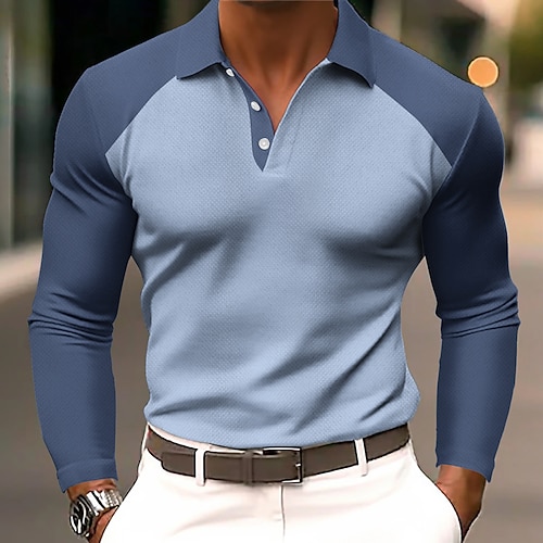 Per uomo Blocco di colori Polo Manica Lunga Magliette polo Bavero Business Casual Athleisure Abbigliamento quotidiano Stampa 3D Bottoni Primavera Autunno Blu Blu 1 Blu 2#