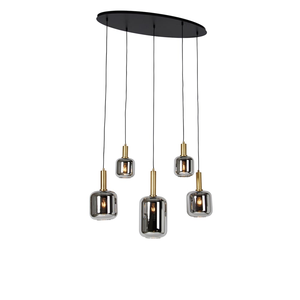 Lampe suspension noire verre doré fumé ovale 5 lumières