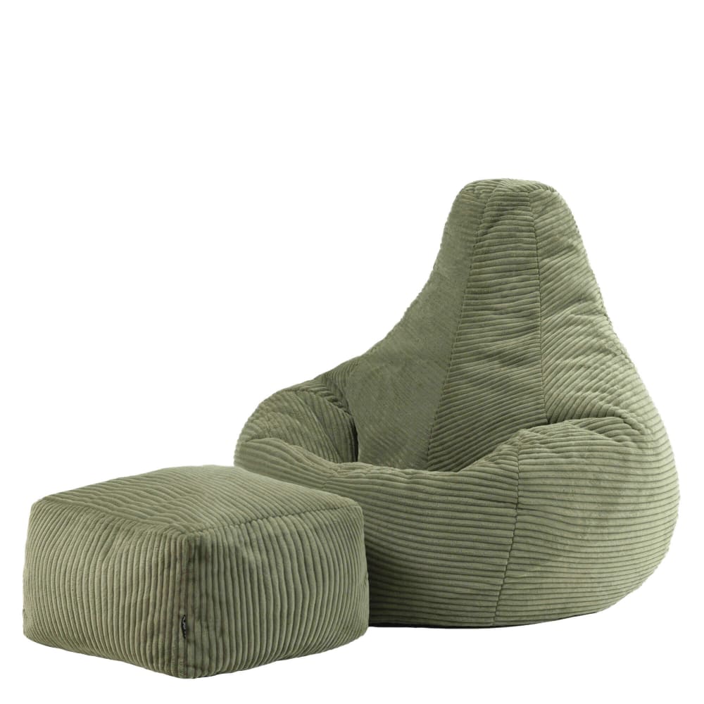 Pouf poire inclinable avec repose-pied velours côtelé vert sauge
