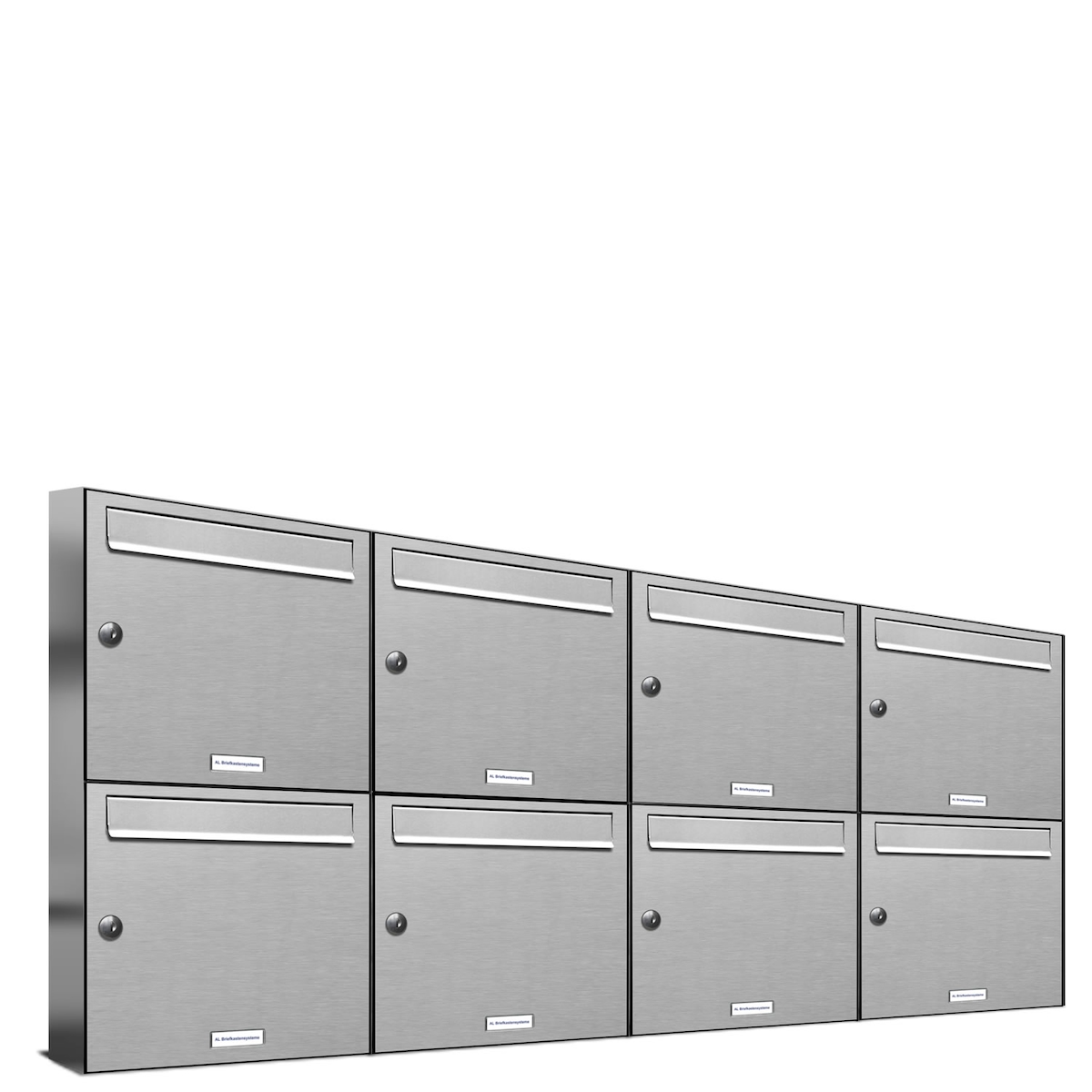 AL Briefkastensysteme 8 Fächer Premium Edelstahl Wand Briefkasten Anlage für Post A4, modern, robust und wetterfest, Artikelnummer: 331T8EA4