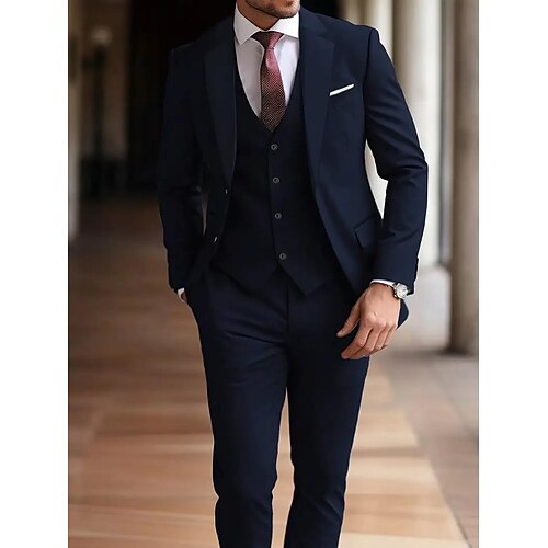 Uomo Matrimonio Casuale Abiti da lavoro Bavero classico Nero Blu marino Quotidiano Formale Tinta unita Vestibilità standard 3 pezzi Monopetto Due Bottoni