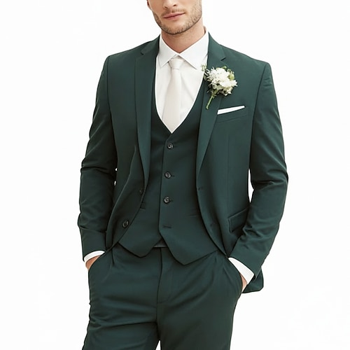 Uomo Matrimonio matrimonio invernale Abiti da festa Bavero classico Verde militare Casual Formale Tinta unita Vestibilità aderente 3 pezzi Monopetto Due Bottoni