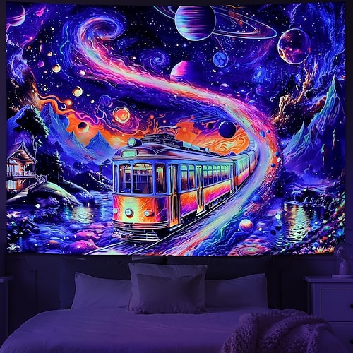 arazzo spaziale galassia luce nera arazzi pianeta reattivo UV arazzi treno psichedelico arazzo paesaggio fantasy universo neon nebulosa arazzo da parete per camera da letto
