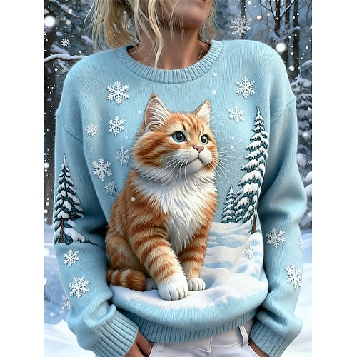Per donna Felpa Carino Streetwear Casual Grafico Animale Fiocchi di neve Girocollo Patchwork Lavorato a maglia Manica Lunga Top Regolari Maglia Natale Feste Ferie Blu Autunno Inverno
