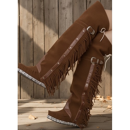 stivali alti fino al ginocchio in pelle scamosciata marrone da donna con tacco a blocco – stivali alti in stile western con punta affilata per outfit autunnali, abbigliamento da ufficio e moda di strada quotidiana
