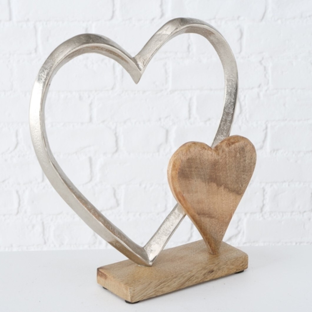 Dekoaufsteller Carolyn Herz Mangoholz Aluminium 28 cm x 23 cm