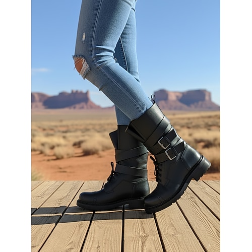 stivali da combattimento con fibbia in pelle da donna - stile urbano audace per la moda - outfit cittadini all'avanguardia, ideali per lo streetwear quotidiano occasioni alla moda