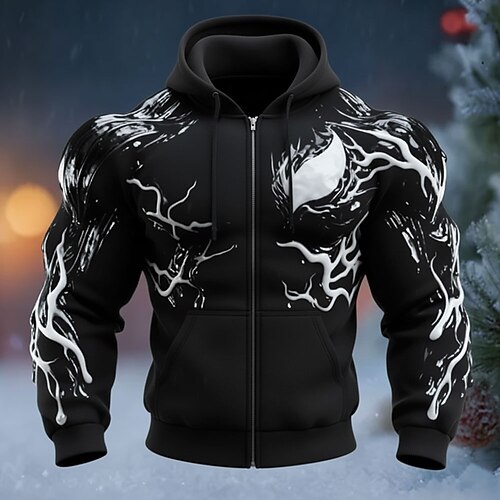 Per uomo Muscolo Illusione ottica Fulmini Felpa con Cappuccio Giacca di pelle Felpa 3D Fantasia Stampa su tutta la superficie Con cerniera Abbigliamento casual alla moda Vacanza Uscire Blu Marrone