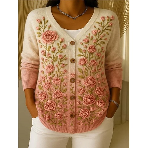 Per donna Felpa Cardigan Elegante Vintage Moda Floreale A Coste Scollo a V Tasca Bottoni Lavorato a maglia Manica Lunga Top Regolari Maglia All'aperto Quotidiano Weekend Bianco Giallo Primavera