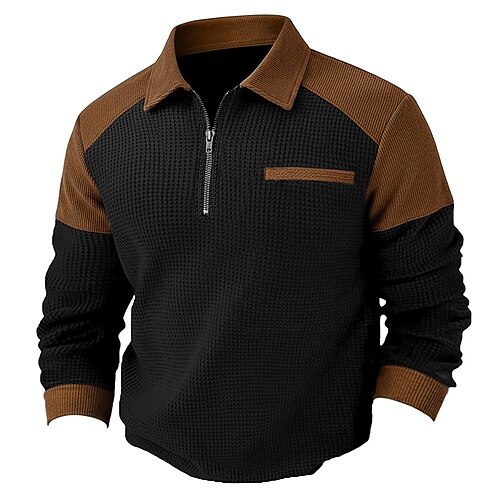 Per uomo Maglietta Waffle Maglietta Maglia Henley a nido d'ape Manica Lunga Colletto Polo Maglione Zip a un quarto Autunno Autunno Inverno Tinta unica Testurizzato Tradizionale / Vintage Casual