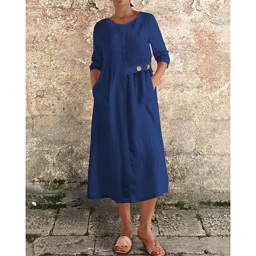 Per donna Blu marino Arancione Verde Estate Primavera Abito maxi Abiti ispirati al lino Vestito Casual Essenziale Moderno Quotidiano Weekend Vestibilità comoda Semplice Scollo a V