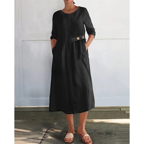 Per donna Nero Vino Blu marino Estate Primavera Abito maxi Abiti in cotone e lino Vestito Casual Abito estivo in cotone Essenziale Moderno Quotidiano Weekend Vestibilità comoda Semplice Girocollo