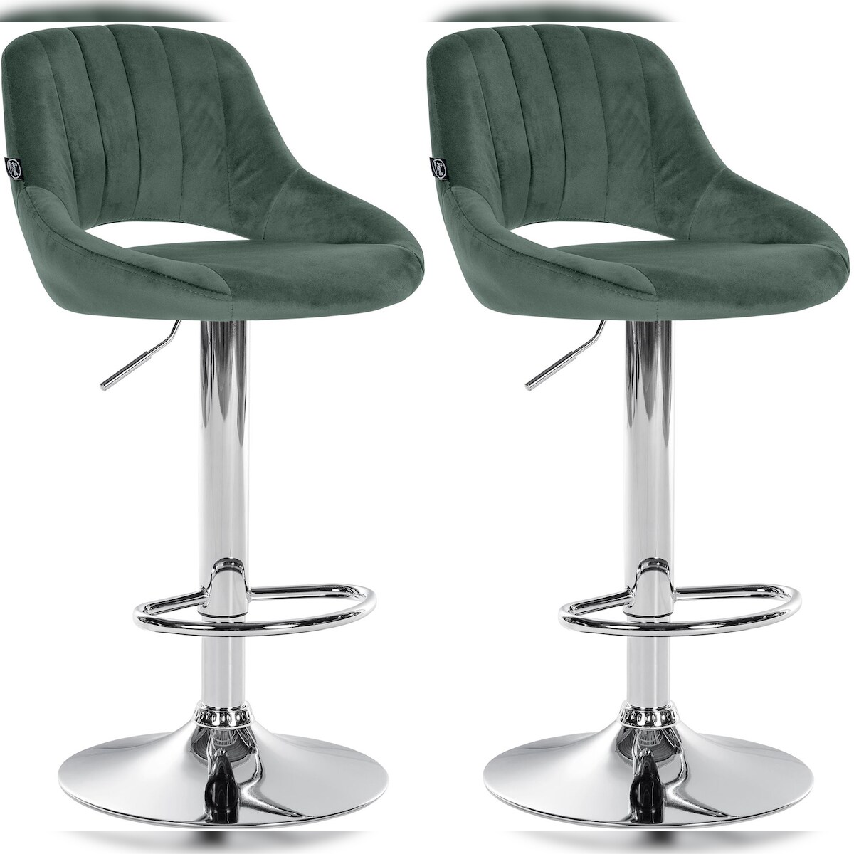CLP 2er Set Barhocker Milet Samt grün/Metall in Chromoptik