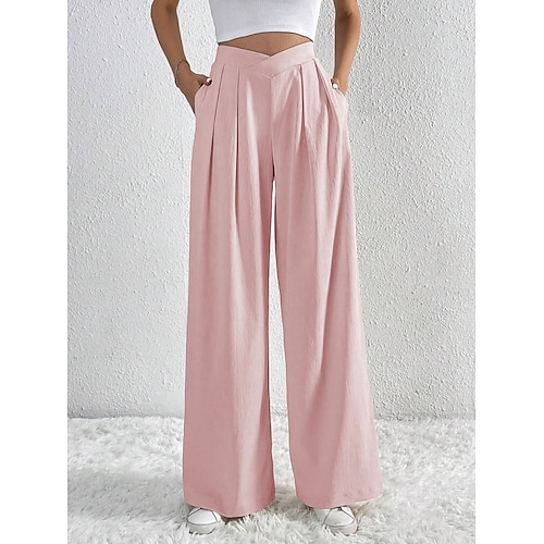 Per donna Gamba larga Pantaloni Streetwear Casual Lungo Vita Alta Semplice Traspirabilità Morbido Micro-elastico Vacanza Streetwear Abbigliamento quotidiano Nero Rosa Blu chiaro Albicocca Autunno