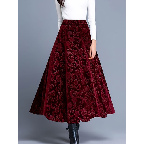 Per donna Gonna Linea A Elegante Moda Casual Maxi Vita Alta Gonne Floreale Floreale Micro-elastico Streetwear Quotidiano Vino Blu Viola Verde Primavera Velluto