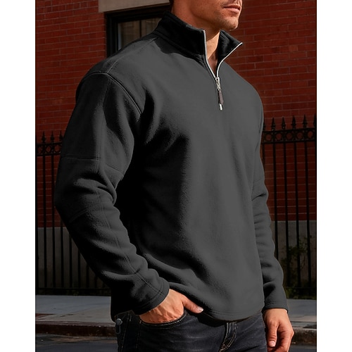 Per uomo Polo Polo con zip a un quarto Vacanza Streetwear Zip a un quarto Manica Lunga Moda Essenziale Tinta unica Cerniera Pile Autunno Inverno Vestibilità regolare blu navy Nero Kaki Grigio scuro