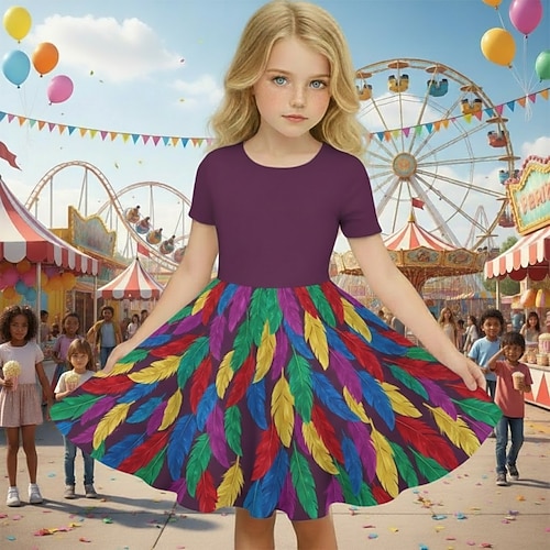 Carnevale ragazze' 3D Grafico Maschera Martedì grasso Abito Manica Corta Stampa 3D Estate Primavera Quotidiano Vacanza Feste Carino Essenziale Casual Bambini 4-12 Anni Vestito Casual Abito a trapezio