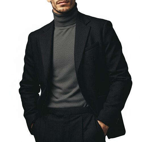 Uomo Affari Casuale Completi in Tweed Bavero classico Nero Borgogna Affari Formale Tinta unita Vestibilità su misura 2 pezzi Monopetto Due Bottoni