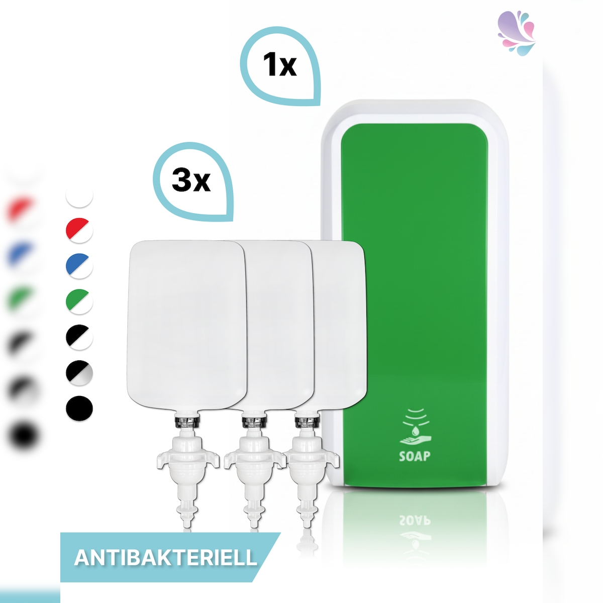Blanc HYGIENIC SET: Schaumseifenspender SENSOR, berührungslos Blanc Cosmos versch. Farben+3x 1-Liter Schaumseife antibakteriell - PRODUKTSET : Farbe - Grün / Weiß