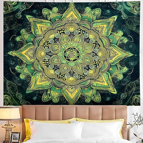 arazzo mandala verde da parete, design floreale bohémien, grande stanza di meditazione zen, arte murale estetica, arredamento per la casa, sfondo per arte murale, poster in tessuto