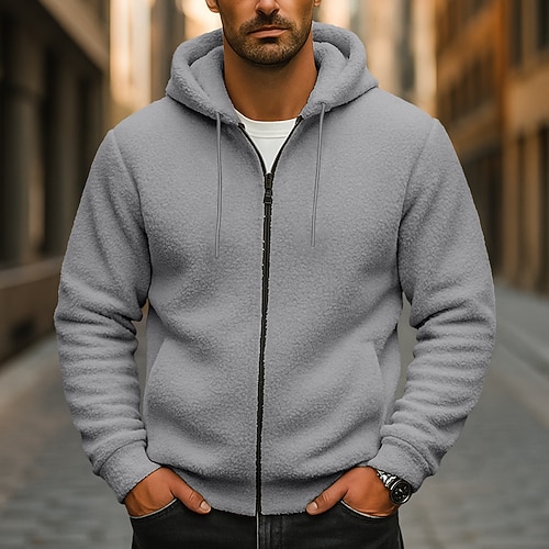 Per uomo Felpa con cappuccio Felpa con cappuccio a zip intera Felpa con cappuccio in pile Nero Blu marino Cachi Grigio Con Cappuccio Semplice Con zip Sport Outdoor Casuale Quotidiano Streetwear