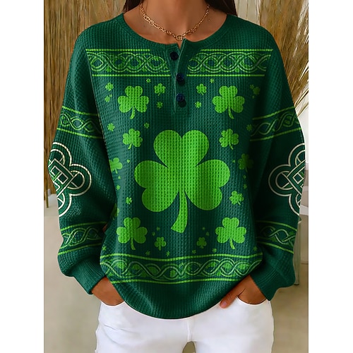 Felpa Donna St. Patrick's Day Grafica Shamrock Calda Casual Manica Lunga Collo Giro Regolare Tops Casual Street Quotidiano Bottoni Stampa Verde Primavera Autunno