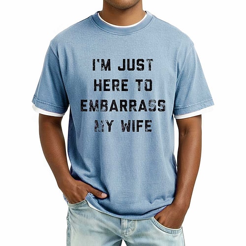 Sono qui solo per mettere in imbarazzo mia moglie, detto divertente da uomo, maglietta grafica in misto cotone lavato, maglietta retrò blu con squillo, scherzo umoristico, regalo per marito,