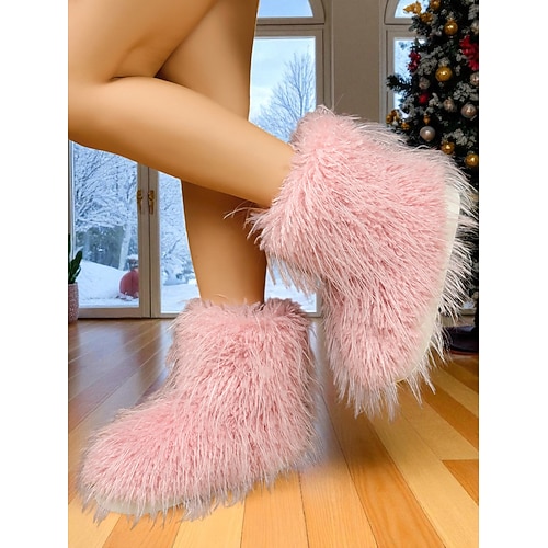 stivali da neve in pelliccia sintetica da donna, caldi stivaletti invernali per interni abbigliamento outdoor, comode scarpe di peluche per Natale, gite sugli sci tempo freddo
