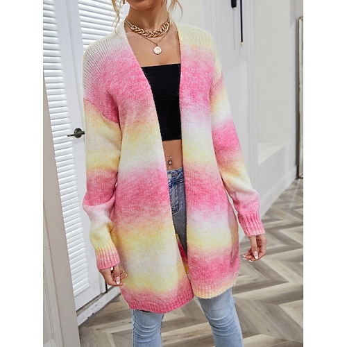 Per donna Felpa Cardigan Elegante Moda Streetwear Gradiente di Colore Aperto davanti Tasca Lavorato a maglia Stampato Manica Lunga Top Regolari Maglia All'aperto Quotidiano Weekend Giallo Rosa