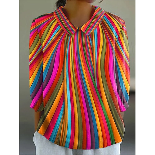 Per donna Blusa A righe Elegante Casual Manica Lunga Colletto a Camicia Top Regolari Quotidiano Bottoni Stampato Blu Giallo Rosso Verde Primavera Autunno