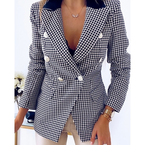 Per donna Blazer Confortevole Tasca Elegante Moda All'aperto Griglia Uscire Casual Quotidiano Weekend Doppiopetto Regolare Bavero Vestibilità regolare Manica Lunga Capispalla Rosso Blu Blu scuro